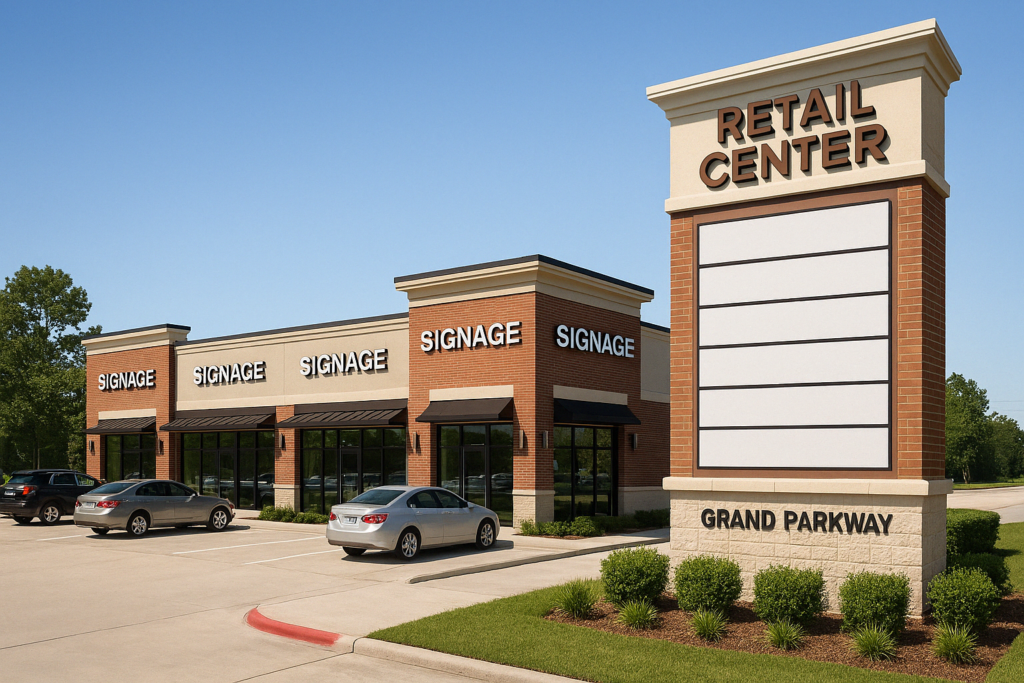 Multi-tenant retail center in one of Houston’s most affluent areas with excellent visibility, monument signage, and strategic location near the Grand Parkway.